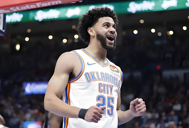 再者,雷霆管理层的建队智慧与阵容深度令人艳羡。 本赛季的七连胜含金量十足,期间他们甚至缺少了全明星二当家杰伦·威廉姆斯,内线支柱切特·霍姆格伦也曾有两场缺席。然而,雷霆依旧高歌猛进。这背后,一方面是亚历山大的无解发挥(场均34.2分5.7篮板5.7助攻的恐怖数据),另一方面则得益于他们深厚的板凳席。除了顶薪续约的新三少核心(亚历山大、杰威、切特)之外,球队中场均得分上双的还有以赛亚·乔、威金斯,以及本赛季突然崛起的阿杰伊·米切尔。米切尔,作为一名二轮秀,从上赛季场均6.5分一跃至本季的18.5分,其进步之神速,完美印证了“雷霆出品,必属精品”的选秀神话。这样的阵容深度,确保了雷霆在面临伤病或状态起伏时,总有球员能够挺身而出,维持球队的战斗力。